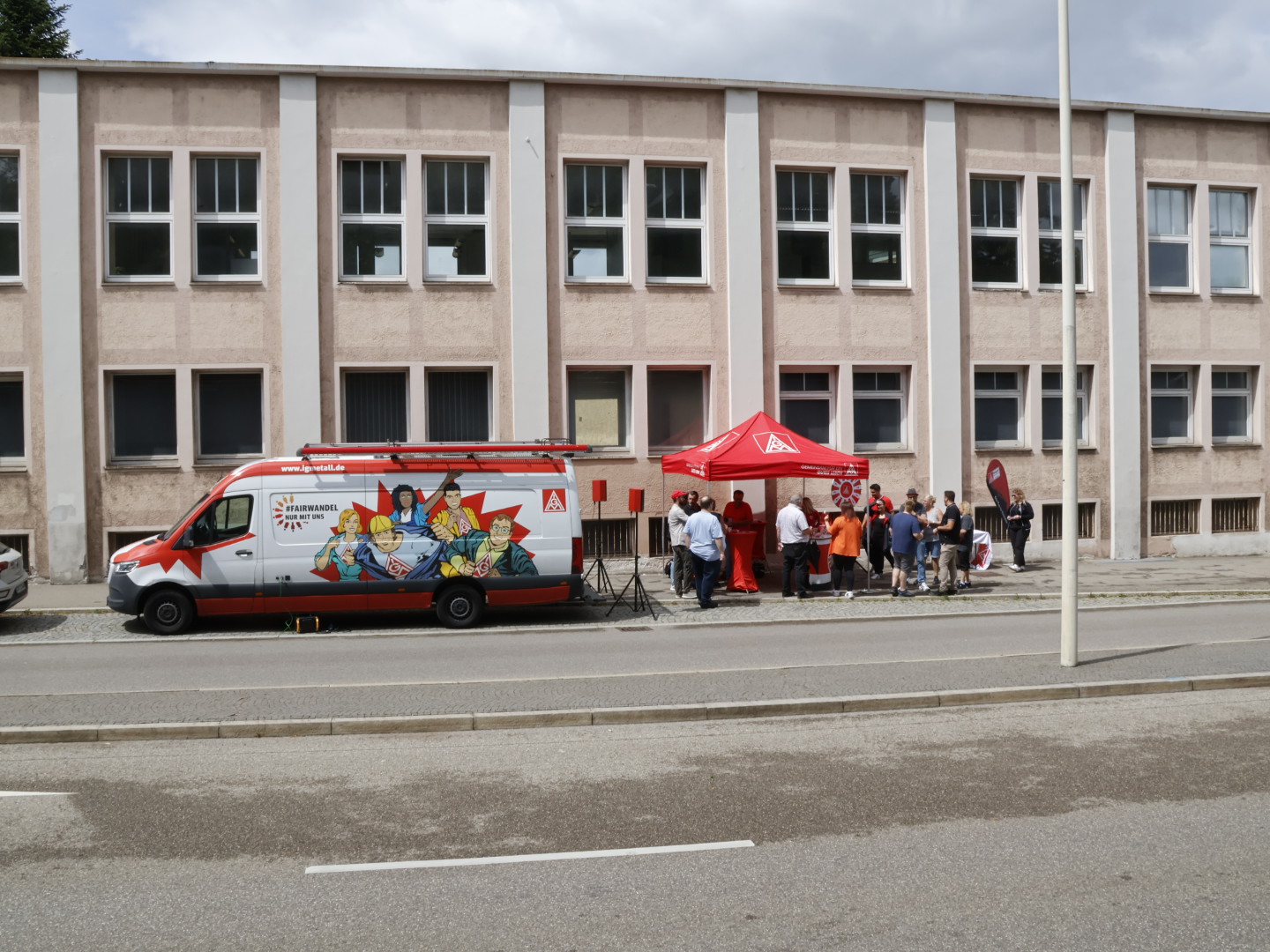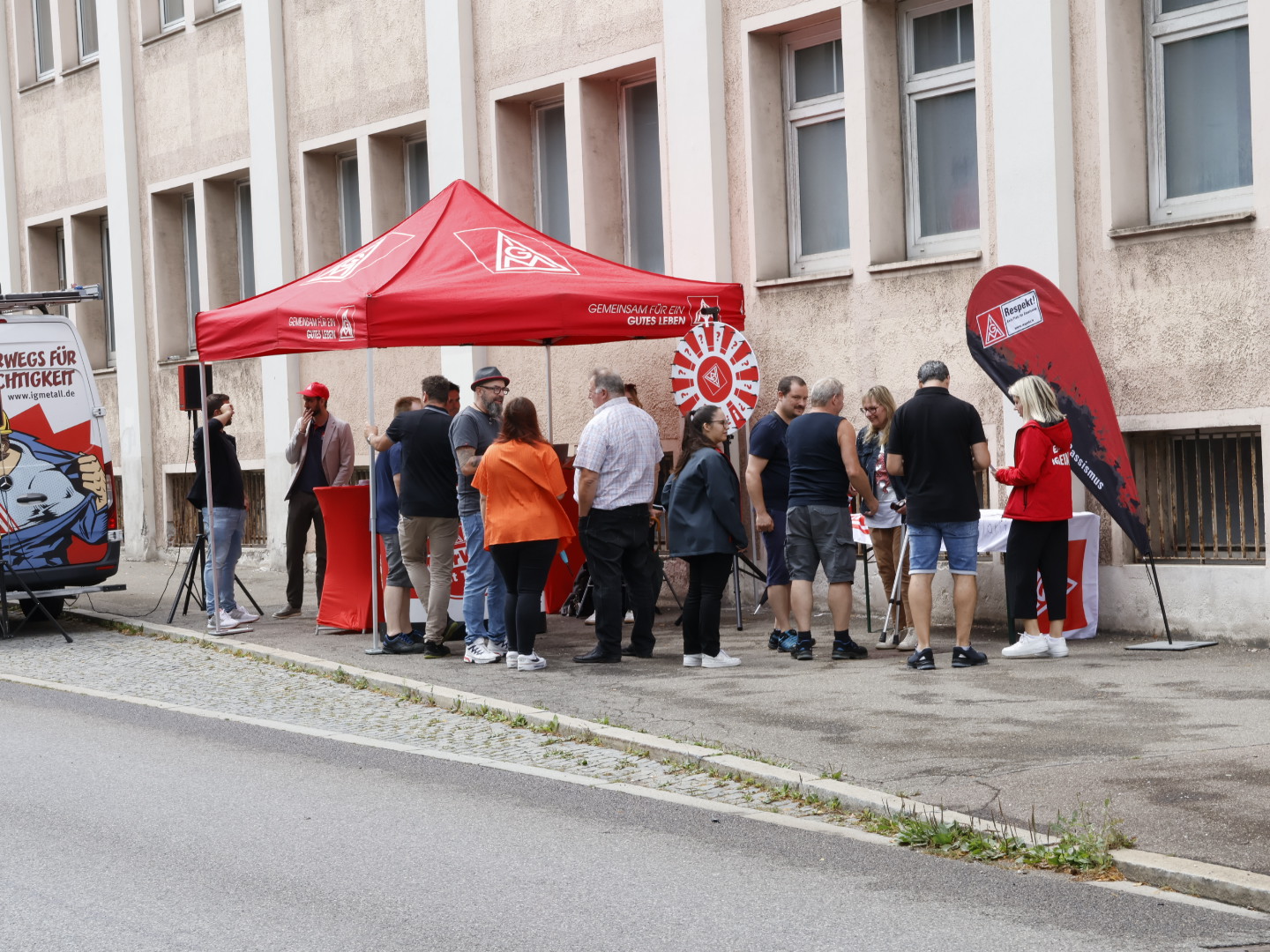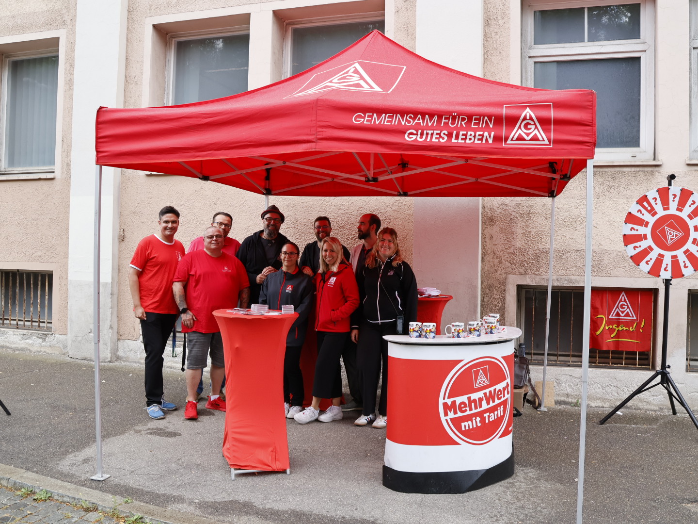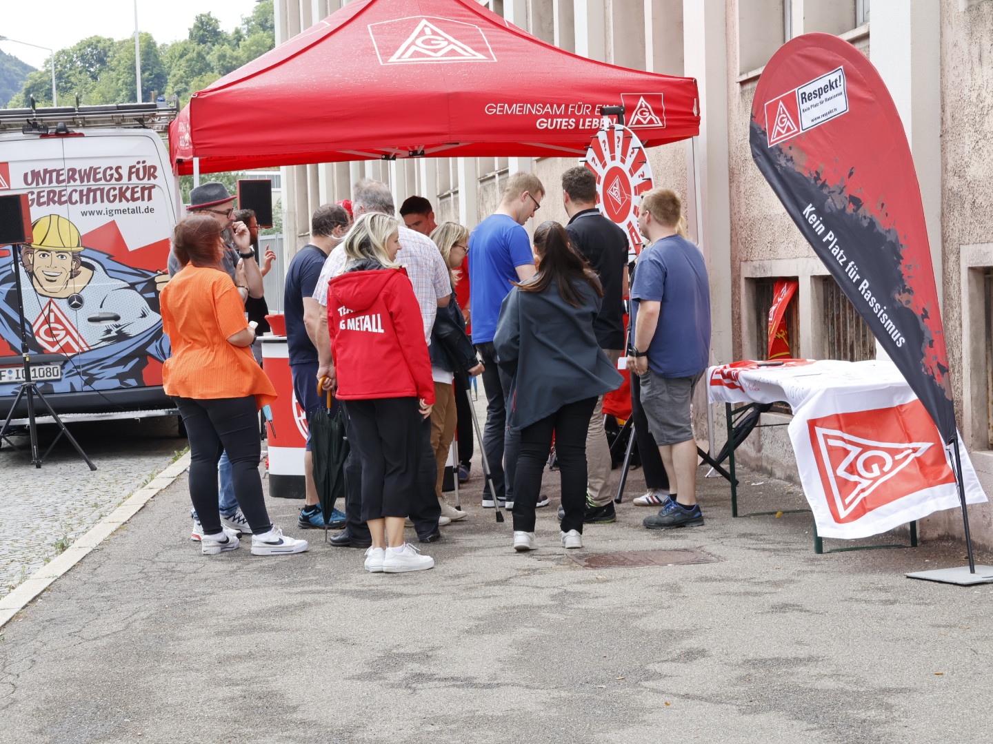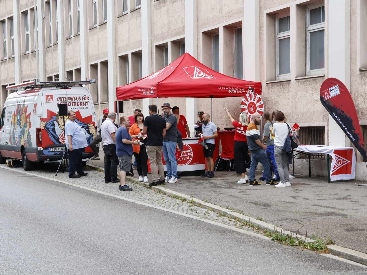 In den vier anderen Gesellschaften gibt es eine große Unsicherheit bezüglich der künftigen Arbeitsbedingungen. Die IG Metall will in allen Bereichen des Unternehmens weiterhin die Tarifbindung erhalten. Bei der Informationsveranstaltung mit der “Roadshow” war der Andrang und das Informationsbedürfnis groß. Die einhellige Meinung der Beschäftigten am Infostand war: “Besser mit Tarifvertrag!”